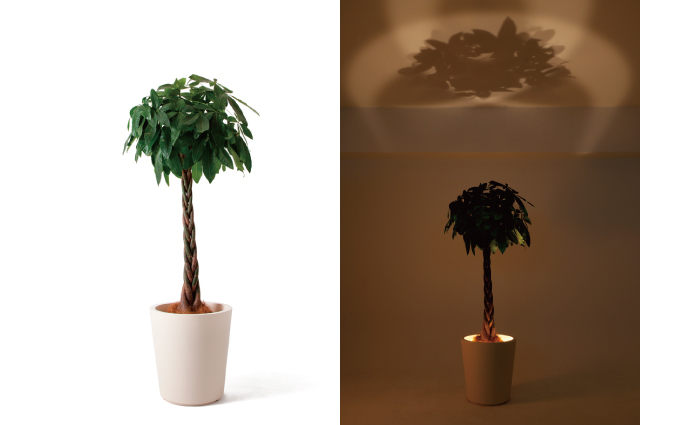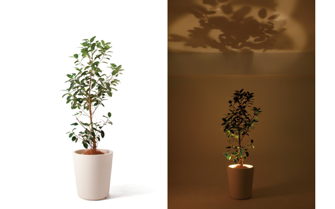 プランターの底にLED電球が設置されており、真下から植物を照らすことで