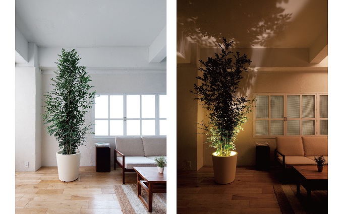 天井に植物のシルエットを投影する緑の照明インテリアらしい。