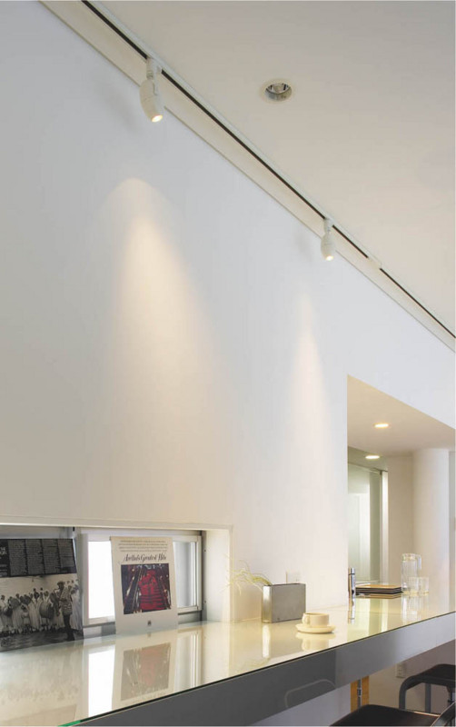 卵のかたちのスポットライト。配線ダクトレールから自由な発想で、きれいなダイクロハロゲンの光を。