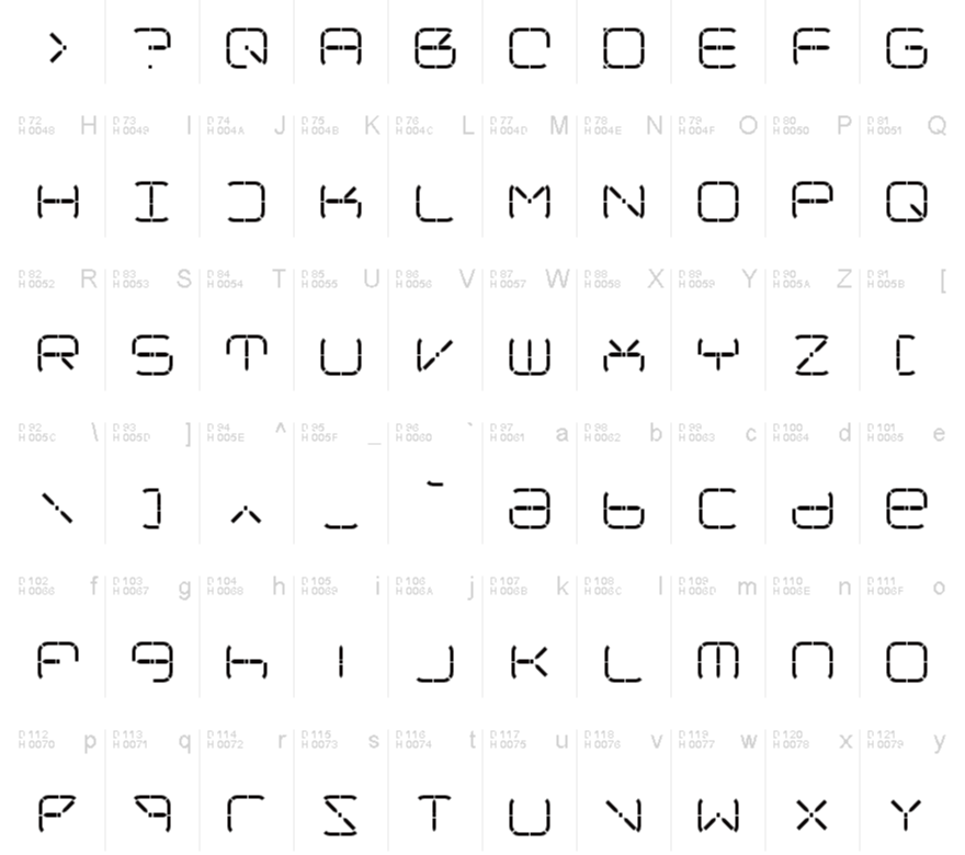 誰もが見覚えのある、時計の文字盤やカリキュレータのようなデジタルフォントをうまく再現しています。