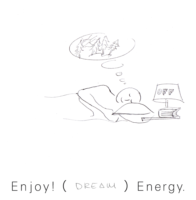 「ベッドで本を読まずに消灯すれば、節電できて、夢も楽しめます」