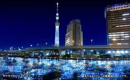 「もし、隅田川にホタルがいたなら」という思いを込め、約10万個の人工ホタルを放流。