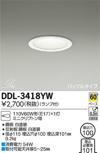DAIKO Âç¸÷Åŵ¡ ¥À¥¦¥ó¥é¥¤¥È DDL-3418YW