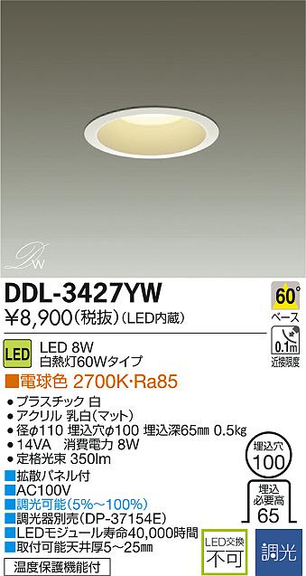DAIKO Âç¸÷Åŵ¡ LED DECOLED¡ÇS(LED¾ÈÌÀ) ¥À¥¦¥ó¥é¥¤¥È DDL-3427YW