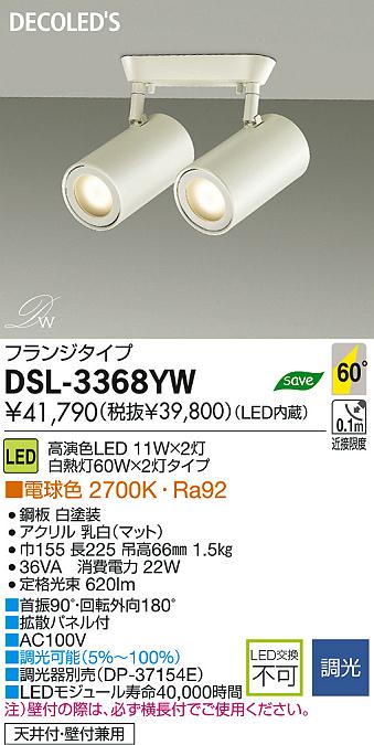 DAIKO Âç¸÷Åŵ¡ LED¥¹¥Ý¥Ã¥È¥é¥¤¥È DECOLED¡ÇS(LED¾ÈÌÀ) DSL-3368YW