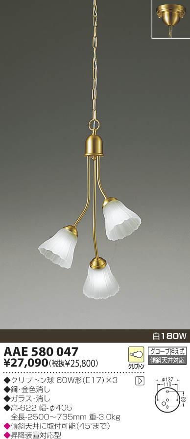 ÉÊ̾¡§ÇòÇ®Åô¿áÈ´¥·¥ã¥ó¥Ç¥ê¥¢¡¡¾ö¿ô¡§¡¡¸÷¸»¸÷¿§¡§ÇòÇ®ÅôÇò180W¡¡¥¯¥ê¥×¥È¥óµå60W·Á(E17)¡ß3¡¡¹Ý¡¦¶â¿§¾Ã¤·¡¡¥¬¥é¥¹¡¦¾Ã¤·¡¡¹â-622 Éý-¦Õ405 Á´Ä¹-2500¡Á735mm ½Å-3.0kg¡É¡¡·¹¼ÐÅ·°æ¤Ë¼èÉÕ²Äǽ¡Ê45¡ë¤Þ¤Ç¡Ë¡¡¾º¹ßÁõÃÖÂбþ·¿