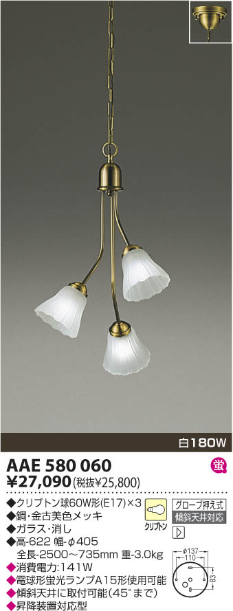 ÉÊ̾¡§ÇòÇ®Åô¿áÈ´¥·¥ã¥ó¥Ç¥ê¥¢¡¡¾ö¿ô¡§¡¡¸÷¸»¸÷¿§¡§ÇòÇ®ÅôÇò180W¡¡¥¯¥ê¥×¥È¥óµå60W·Á(E17)¡ß3¡¡¹Ý¡¦¶â¸ÅÈþ¿§¥á¥Ã¥¡¡¥¬¥é¥¹¡¦¾Ã¤·¡¡¹â-622 Éý-¦Õ405 Á´Ä¹-2500¡Á735mm ½Å-3.0kg¡É¡¡·¹¼ÐÅ·°æ¤Ë¼èÉÕ²Äǽ¡Ê45¡ë¤Þ¤Ç¡Ë¡¡¾º¹ßÁõÃÖÂбþ·¿