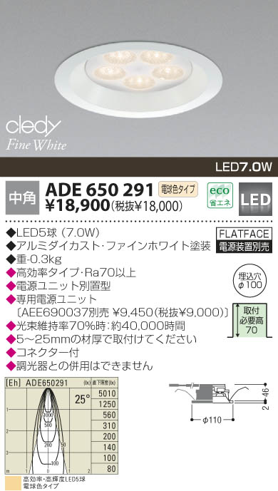 ÉÊ̾¡§LED¥À¥¦¥ó¥é¥¤¥È¡¡¾ö¿ô¡§¡¡¸÷¸»¸÷¿§¡§LED¡ÊÅŵ忧¥¿¥¤¥×¡ËLED7.0W¡¡LED5µå¡Ê7.0W¡Ë¡¡¥¢¥ë¥ß¥À¥¤¥«¥¹¥È¡¦¥Õ¥¡¥¤¥ó¥Û¥ï¥¤¥ÈÅÉÁõ¡¡Éý-¦Õ110 ½ÐÉý-2 Ëä¹þ·ê·Â-¦Õ100 Ëä¹þ¹â-46 ¼èÉÕɬÍ×¹â-70mm ½Å-0.3kg¡É¡¡¹â¸úΨ¥¿¥¤¥×¡¦Ra70°Ê¾å¡¡ÅŸ»¥æ¥Ë¥Ã¥ÈÊÌÃÖ·¿¡¡ÀìÍÑÅŸ»¥æ¥Ë¥Ã¥È¡ÌAEE690037ÊÌÇä ¡ï9