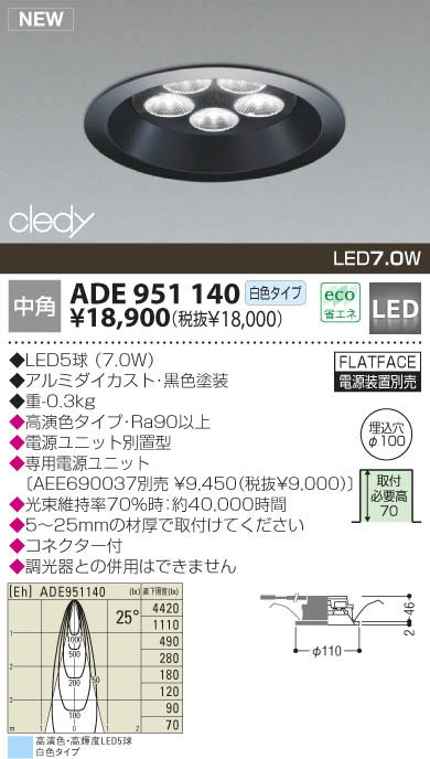 ÉÊ̾¡§LED¥À¥¦¥ó¥é¥¤¥È¡¡¾ö¿ô¡§¡¡¸÷¸»¸÷¿§¡§LED¡ÊÇò¿§¥¿¥¤¥×¡ËLED7.0W¡¡LED5µå¡Ê7.0W¡Ë¡¡¥¢¥ë¥ß¥À¥¤¥«¥¹¥È¡¦¹õ¿§ÅÉÁõ¡¡Éý-¦Õ110 ½ÐÉý-2 Ëä¹þ·ê·Â-¦Õ100 Ëä¹þ¿¼-46 ¼èÉÕɬÍ×¹â-70mm ½Å-0.3kg¡É¡¡¹â±é¿§¥¿¥¤¥×¡¦Ra90°Ê¾å¡¡ÅŸ»¥æ¥Ë¥Ã¥ÈÊÌÃÖ·¿¡¡ÀìÍÑÅŸ»¥æ¥Ë¥Ã¥È¡ÌAEE690037ÊÌÇä ¡ï9