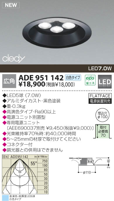 ÉÊ̾¡§LED¥À¥¦¥ó¥é¥¤¥È¡¡¾ö¿ô¡§¡¡¸÷¸»¸÷¿§¡§LED¡ÊÇò¿§¥¿¥¤¥×¡ËLED7.0W¡¡LED5µå¡Ê7.0W¡Ë¡¡¥¢¥ë¥ß¥À¥¤¥«¥¹¥È¡¦¹õ¿§ÅÉÁõ¡¡Éý-¦Õ110 ½ÐÉý-2 Ëä¹þ·ê·Â-¦Õ100 Ëä¹þ¿¼-46 ¼èÉÕɬÍ×¹â-70mm ½Å-0.3kg¡É¡¡¹â±é¿§¥¿¥¤¥×¡¦Ra90°Ê¾å¡¡ÅŸ»¥æ¥Ë¥Ã¥ÈÊÌÃÖ·¿¡¡ÀìÍÑÅŸ»¥æ¥Ë¥Ã¥È¡ÌAEE690037ÊÌÇä ¡ï9