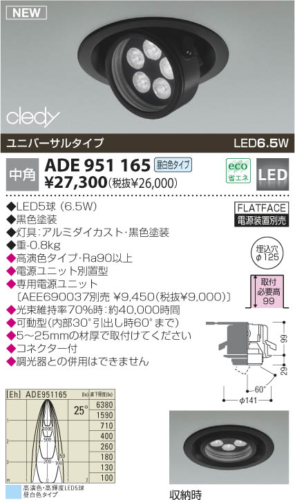 ÉÊ̾¡§LED¥æ¥Ë¥Ð¡¼¥µ¥ë¥À¥¦¥ó¥é¥¤¥È¡¡¾ö¿ô¡§¡¡¸÷¸»¸÷¿§¡§LED¡ÊÃëÇò¿§¥¿¥¤¥×¡ËLED6.5W¡¡LED5µå¡Ê6.5W¡Ë¡¡¹õ¿§ÅÉÁõ¡¡Åô¶ñ¡§¥¢¥ë¥ß¥À¥¤¥«¥¹¥È¡¦¹õ¿§ÅÉÁõ¡¡Éý-¦Õ141 ½ÐÉý-3 Ëä¹þ·ê·Â-¦Õ125 Ëä¹þ¿¼-99 ¼èÉÕɬÍ×¹â-99mm ½Å-0.8kg¡É¡¡¹â±é¿§¥¿¥¤¥×¡¦Ra90°Ê¾å¡¡ÅŸ»¥æ¥Ë¥Ã¥ÈÊÌÃÖ·¿¡¡ÀìÍÑÅŸ»¥æ¥Ë¥Ã¥ÈAEE690037ÊÌÇä