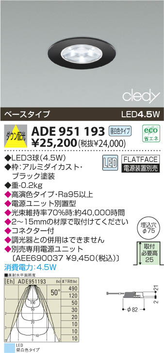 ÉÊ̾¡§LED¥À¥¦¥ó¥é¥¤¥È¡¡¾ö¿ô¡§¡¡¸÷¸»¸÷¿§¡§LED¡ÊÃëÇò¿§¥¿¥¤¥×¡ËLED4.5W¡¡LED3µå¡Ê4.5W¡Ë¡¡¥¢¥ë¥ß¥À¥¤¥«¥¹¥È¡¦¹õ¿§ÅÉÁõ¡¡Éý-¦Õ82 ½ÐÉý-2 Ëä¹þ·ê·Â-¦Õ75 Ëä¹þ¿¼-21 ¼èÉÕɬÍ×¹â-25mm ½Å-0.2kg¡É¡¡¹â±é¿§¥¿¥¤¥×¡¦Ra95°Ê¾å¡¡ÅŸ»¥æ¥Ë¥Ã¥ÈÊÌÃÖ·¿¡¡ÀìÍÑÅŸ»¥æ¥Ë¥Ã¥ÈAEE690037ÊÌÇä