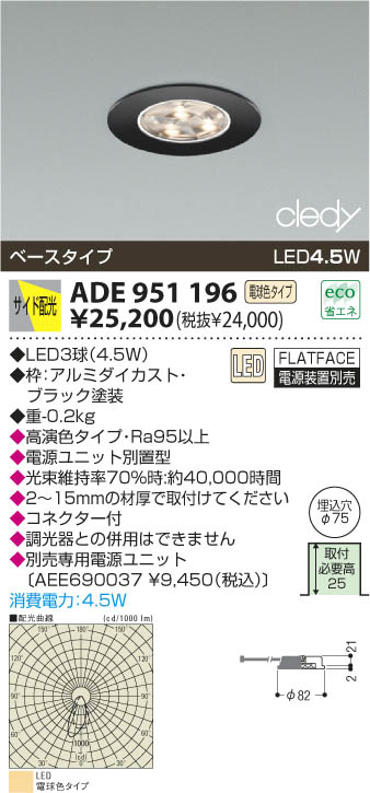 ÉÊ̾¡§LED¥À¥¦¥ó¥é¥¤¥È¡¡¾ö¿ô¡§¡¡¸÷¸»¸÷¿§¡§LED¡ÊÅŵ忧¥¿¥¤¥×¡ËLED4.5W¡¡LED3µå¡Ê4.5W¡Ë¡¡¥¢¥ë¥ß¥À¥¤¥«¥¹¥È¡¦¹õ¿§ÅÉÁõ¡¡Éý-¦Õ82 ½ÐÉý-2 Ëä¹þ·ê·Â-¦Õ75 Ëä¹þ¿¼-21 ¼èÉÕɬÍ×¹â-25mm ½Å-0.2kg¡É¡¡¹â±é¿§¥¿¥¤¥×¡¦Ra95°Ê¾å¡¡ÅŸ»¥æ¥Ë¥Ã¥ÈÊÌÃÖ·¿¡¡ÀìÍÑÅŸ»¥æ¥Ë¥Ã¥ÈAEE690037ÊÌÇä