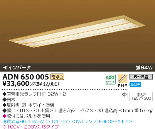 ÉÊ̾¡§FHF¥Ù¡¼¥¹¥é¥¤¥È¡¡¾ö¿ô¡§6¡Á8¾ö¡¡¸÷¸»¸÷¿§¡§·Ö¸÷Åô¡ÊÅŵ忧¡Ë·Ö64W¡¡Ä¾´É·Ö¸÷¥é¥ó¥×FHF32W¡ß2¡¡ÇòÌÚ¡¡È¿¼ÍÈÄ¡§¹Ý¡¦¥Û¥ï¥¤¥ÈÅÉÁõ¡¡Éý-1316¡ß370 ½ÐÉý-21 Ëä¹þ·ê·Â-1257¡ß300 Ëä¹þ¹â-81mm ½Å-5.6kg¡É¡¡¼èÉդˤϥܥë¥È¤ò»ÈÍÑ|¢¨100V¡Á200VÂбþ¥¿¥¤¥×|¡É¾ÃÈñ¸úΨ96.4lm/W