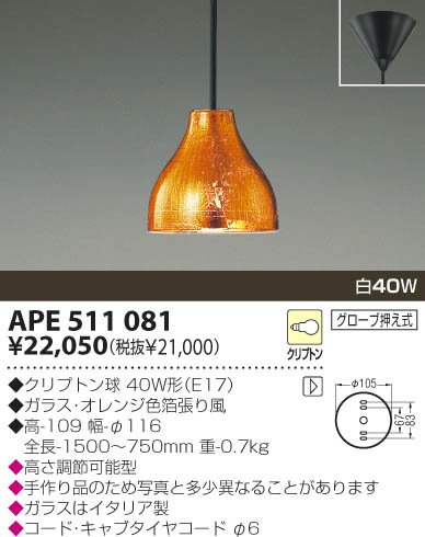 ÉÊ̾¡§ÇòÇ®Åô¥Ú¥ó¥À¥ó¥È¡¡¾ö¿ô¡§¡¡¸÷¸»¸÷¿§¡§ÇòÇ®ÅôÇò40W¡¡¥¯¥ê¥×¥È¥óµå40W·Á(E17)¡¡¥¬¥é¥¹¡¦¥ª¥ì¥ó¥¸¿§ÇóÄ¥¤êÉ÷¡¡¹â-109 Éý-¦Õ116 Á´Ä¹-1500¡Á750mm ½Å-0.7kg¡É¡¡¹â¤µÄ´Àá²Äǽ·¿¡¡¼êºî¤êÉʤΤ¿¤á¼Ì¿¿¤È¿¾¯°Û¤Ê¤ë¤³¤È¤¬¤¢¤ê¤Þ¤¹¡¡¥¬¥é¥¹¤Ï¥¤¥¿¥ê¥¢À½¡¡¥³¡¼¥É¡¦¥¥ã¥Ö¥¿¥¤¥ä¥³¡¼¥É ¦Õ6¡É