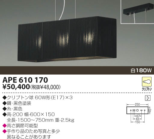 ÉÊ̾¡§ÇòÇ®Åô¥Ú¥ó¥À¥ó¥È¡¡¾ö¿ô¡§¡¡¸÷¸»¸÷¿§¡§ÇòÇ®ÅôÇò180W¡¡¥¯¥ê¥×¥È¥óµå60W·Á(E17)¡ß3¡¡¹Ý¡¦¹õ¿§ÅÉÁõ¡¡»å¡¦¹õ¿§¡¡¹â-200 Éý-600¡ß150 Á´Ä¹-1500¡Á750mm ½Å-2.5kg¡É¡¡¹â¤µÄ´Àá²Äǽ·¿¡¡¼êºî¤êÉʤΤ¿¤á¼Ì¿¿¤È¿¾¯°Û¤Ê¤ë¤³¤È¤¬¤¢¤ê¤Þ¤¹