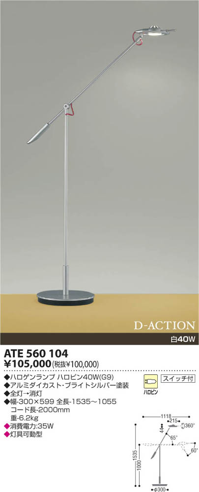 ÉÊ̾¡§¥Õ¥í¥¢¥¹¥¿¥ó¥É¡¡¾ö¿ô¡§¡¡¸÷¸»¸÷¿§¡§ÇòÇ®ÅôÇò40W¡¡¥Ï¥í¥²¥ó¥é¥ó¥×¡¡¥Ï¥í¥Ô¥ó40W(G9)¡¡¥¢¥ë¥ß¥À¥¤¥«¥¹¥È¡¦¥Ö¥é¥¤¥È¥·¥ë¥Ð¡¼ÅÉÁõ¡¡Á´Åô¢ª¾ÃÅô¡¡Éý-300¡ß599 Á´Ä¹-1535¡Á1055 ¥³¡¼¥ÉĹ-2000mm ½Å-6.2kg¡É¡¡Åô¶ñ²Äư·¿