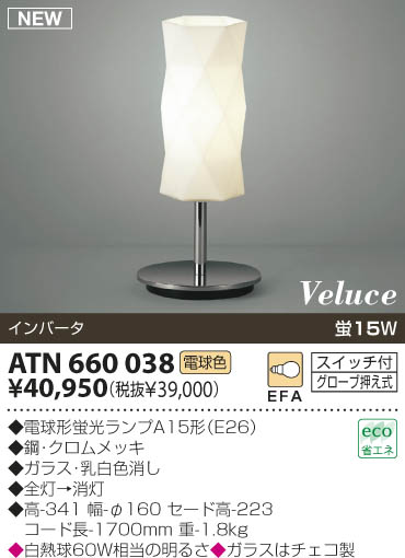 ÉÊ̾¡§¥Æ¡¼¥Ö¥ë¥¹¥¿¥ó¥É¡¡¾ö¿ô¡§¡¡¸÷¸»¸÷¿§¡§·Ö¸÷Åô¡ÊÅŵ忧¡Ë·Ö15W¡¡Åŵå·Á·Ö¸÷¥é¥ó¥×A15·Á(E26)¡¡¹Ý¡¦¥¯¥í¥à¥á¥Ã¥¡¡¥¬¥é¥¹¡¦ÆýÇò¿§¾Ã¤·¡¡Á´Åô¢ª¾ÃÅô¡¡¹â-341 Éý-¦Õ160 ¥³¡¼¥ÉĹ-1700 ¥»¡¼¥É¹â-223mm ½Å-1.8kg¡É¡¡ÇòÇ®µå60WÁêÅö¤ÎÌÀ¤ë¤µ¡¡¥¬¥é¥¹¤Ï¥Á¥§¥³À½
