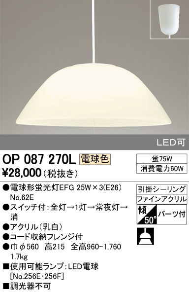ODELIC ¥ª¡¼¥Ç¥ê¥Ã¥¯ ¥Ú¥ó¥À¥ó¥È¥é¥¤¥È OP087270L