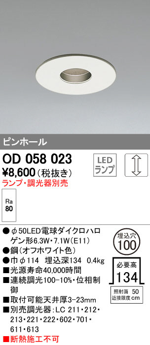 ODELIC ¥ª¡¼¥Ç¥ê¥Ã¥¯ ¥À¥¦¥ó¥é¥¤¥È OD058023