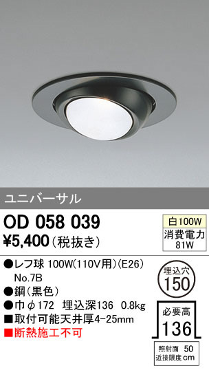 ODELIC ¥ª¡¼¥Ç¥ê¥Ã¥¯ ¥À¥¦¥ó¥é¥¤¥È OD058039