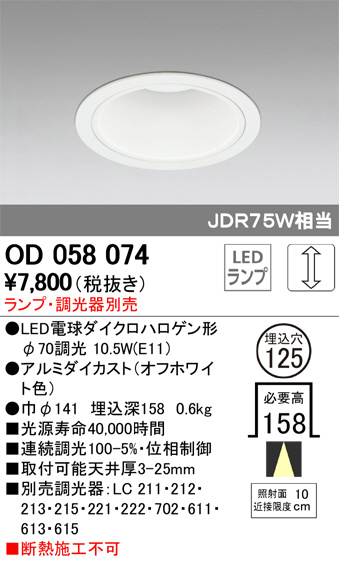 ODELIC ¥ª¡¼¥Ç¥ê¥Ã¥¯ ¥À¥¦¥ó¥é¥¤¥È OD058074