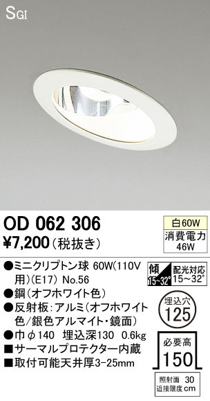 ODELIC ¥ª¡¼¥Ç¥ê¥Ã¥¯ ¥À¥¦¥ó¥é¥¤¥È OD062306