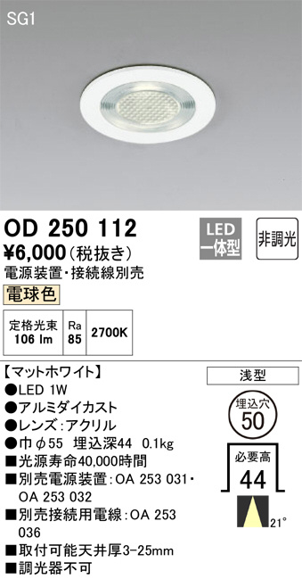 ODELIC ¥ª¡¼¥Ç¥ê¥Ã¥¯ ¥À¥¦¥ó¥é¥¤¥È OD250112