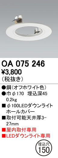 ODELIC ¥ª¡¼¥Ç¥ê¥Ã¥¯ »Ü¹©ÉôÉÊ¡¦¼èÉեѡ¼¥Ä OA075246