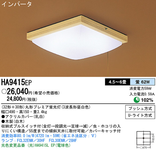 Panasonic ¥·¡¼¥ê¥ó¥° ÏÂÉ÷¾ÈÌÀ HA9415EP