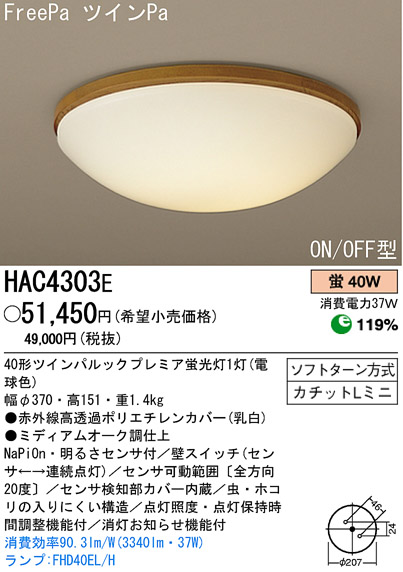 ¡ü¾ÃÅô¤ªÃΤ餻µ¡Ç½ÉÕ ¾ÃÈñ¸úΨ90.3lm/W(3340lm¡¦37W) ¥é¥ó¥×:FHD40EL¡¿H FreePa ¥Ä¥¤¥óPa ON/OFF·¿