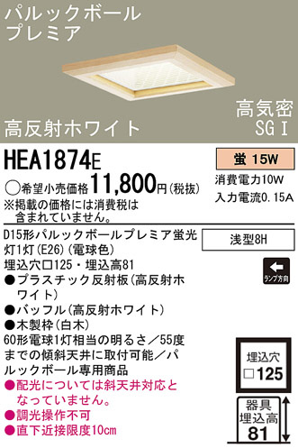 Panasonic ¥À¥¦¥ó¥é¥¤¥È ÏÂÉ÷¾ÈÌÀ HEA1874E