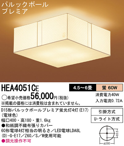 Panasonic ¥·¡¼¥ê¥ó¥° ÏÂÉ÷¾ÈÌÀ HEA4051CE