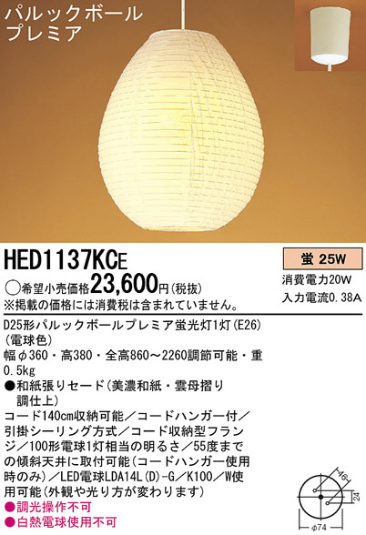 Panasonic ¥Ú¥ó¥À¥ó¥È ÏÂÉ÷¾ÈÌÀ HED1137KCE