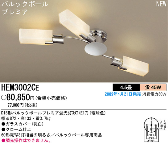 ·Ö¸÷Åô¡ÊÅŵ忧¡Ë45W 4.5¾ö D15·Á¥Ñ¥ë¥Ã¥¯¥Ü¡¼¥ë¥×¥ì¥ß¥¢·Ö¸÷Åô3Åô¡ÊE17¡Ë¡ÊÅŵ忧¡Ë Éý¦Õ872¡¦¹â133¡¦½Å3.7kg ¥¬¥é¥¹¥«¥Ð¡¼ÆýÇò ¥¯¥í¡¼¥à»Å¾å