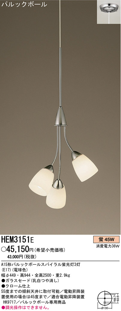 ·Ö¸÷Åô¡ÊÅŵ忧¡Ë45W A15·Á¥Ñ¥ë¥Ã¥¯¥Ü¡¼¥ë¥¹¥Ñ¥¤¥é¥ë·Ö¸÷Åô3Åô¡ÊE17¡Ë¡ÊÅŵ忧¡Ë Éý¦Õ449¡¦¹â944¡¦Á´¹â2500¡¦½Å2.9kg ¥¬¥é¥¹¥»¡¼¥ÉÆýÇò¤Ä¤ä¾Ã¤· ¥¯¥í¡¼¥à»Å¾å