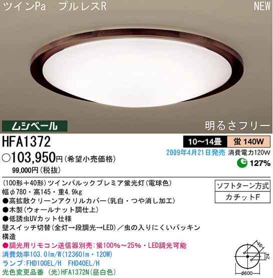 ¡üÄ´¸÷ÍÑ¥ê¥â¥³¥óÁ÷¿®´ïÊÌÇä¡§·Ö100¡ó¡Á25¡ó¡¦LEDÄ´¸÷²Äǽ ¾ÃÈñ¸úΨ103.0lm/W(12360lm¡¦120W) ¥é¥ó¥×:FHD100EL¡¿H¡¡FHD40EL¡¿H