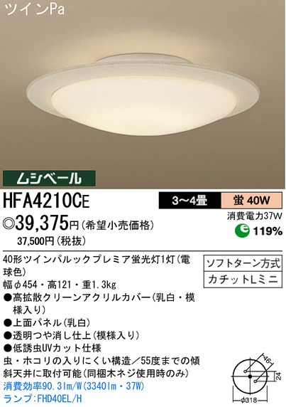 ¡ü55Å٤ޤǤη¹¼ÐÅ·°æ¤Ë¼èÉÕ²Äǽ¡ÊƱºÌڥͥ¸»ÈÍÑ»þ¤Î¤ß¡Ë ¾ÃÈñ¸úΨ90.3lm/W(3340lm¡¦37W) ¥é¥ó¥×:FHD40EL¡¿H ¥Ä¥¤¥óPa