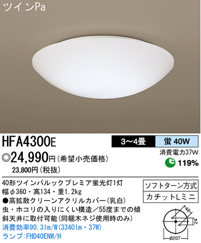 ¡ü55Å٤ޤǤη¹¼ÐÅ·°æ¤Ë¼èÉÕ²Äǽ¡ÊƱºÌڥͥ¸»ÈÍÑ»þ¤Î¤ß¡Ë ¾ÃÈñ¸úΨ90.3lm/W(3340lm¡¦37W) ¥é¥ó¥×:FHD40ENW¡¿H ¥Ä¥¤¥óPa