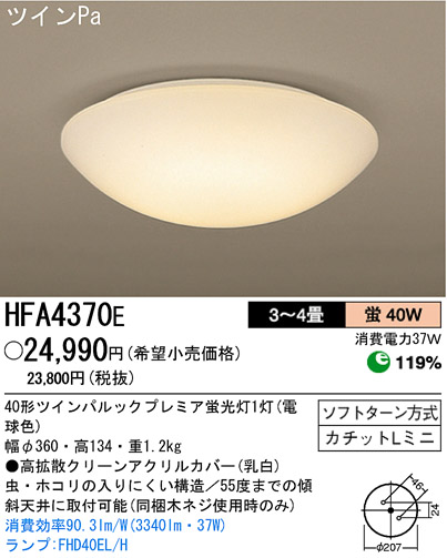 ¡ü55Å٤ޤǤη¹¼ÐÅ·°æ¤Ë¼èÉÕ²Äǽ¡ÊƱºÌڥͥ¸»ÈÍÑ»þ¤Î¤ß¡Ë ¾ÃÈñ¸úΨ90.3lm/W(3340lm¡¦37W) ¥é¥ó¥×:FHD40EL¡¿H ¥Ä¥¤¥óPa