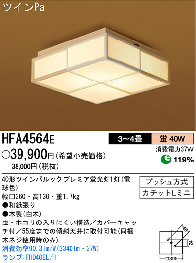 ¡ü55Å٤ޤǤη¹¼ÐÅ·°æ¤Ë¼èÉÕ²Äǽ¡ÊƱºÌڥͥ¸»ÈÍÑ»þ¤Î¤ß¡Ë ¾ÃÈñ¸úΨ90.3lm/W(3340lm¡¦37W) ¥é¥ó¥×:FHD40EL¡¿H ¥Ä¥¤¥óPa