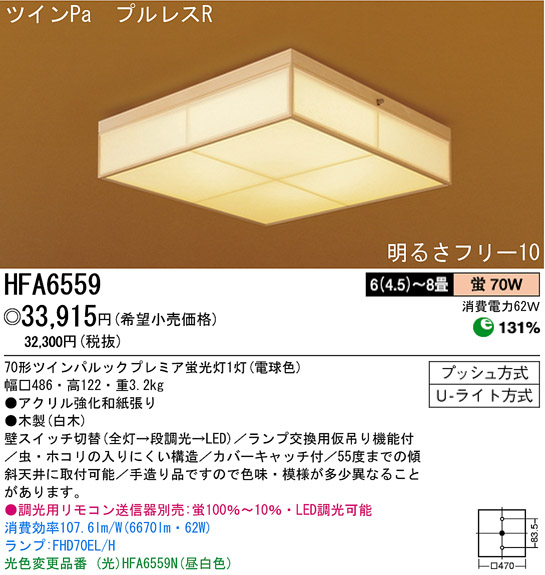 ¡üÄ´¸÷ÍÑ¥ê¥â¥³¥óÁ÷¿®´ïÊÌÇä¡§·Ö100¡ó¡Á10¡ó¡¦LEDÄ´¸÷²Äǽ ¾ÃÈñ¸úΨ107.6lm/W(6670lm¡¦62W) ¥é¥ó¥×:FHD70EL¡¿H