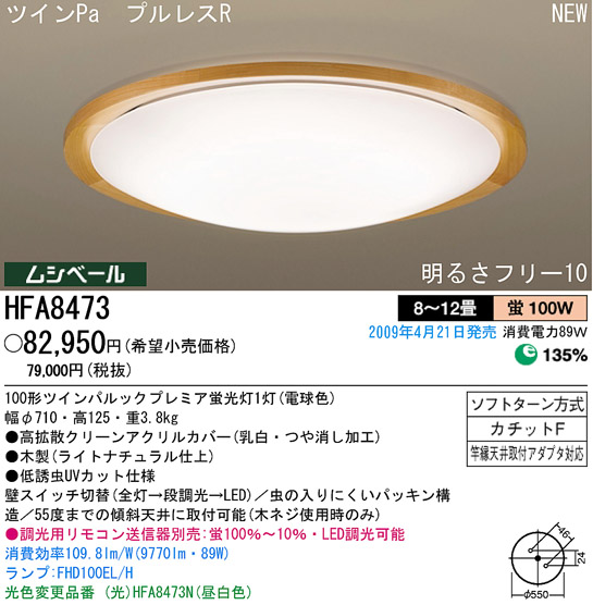 ¡üÄ´¸÷ÍÑ¥ê¥â¥³¥óÁ÷¿®´ïÊÌÇä¡§·Ö100¡ó¡Á10¡ó¡¦LEDÄ´¸÷²Äǽ ¾ÃÈñ¸úΨ109.8lm/W(9770lm¡¦89W) ¥é¥ó¥×:FHD100EL¡¿H