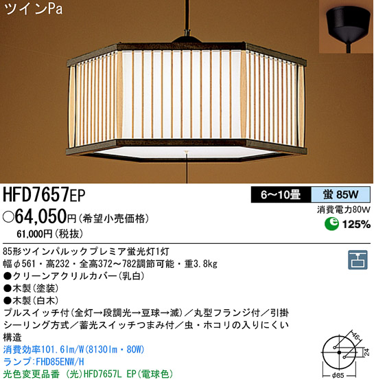 ¡üÃ¥Û¥³¥ê¤ÎÆþ¤ê¤Ë¤¯¤¤¹½Â¤ ¾ÃÈñ¸úΨ101.6lm/W(8130lm¡¦80W) ¥é¥ó¥×:FHD85ENW¡¿H