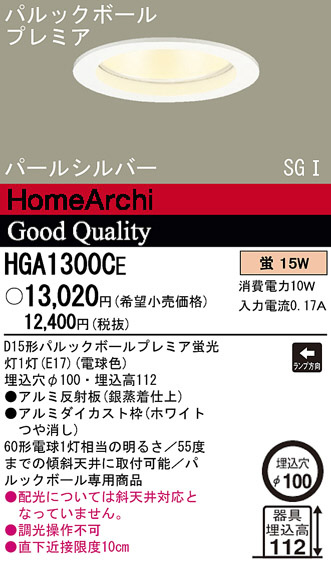 Panasonic ¥À¥¦¥ó¥é¥¤¥È HGA1300CE
