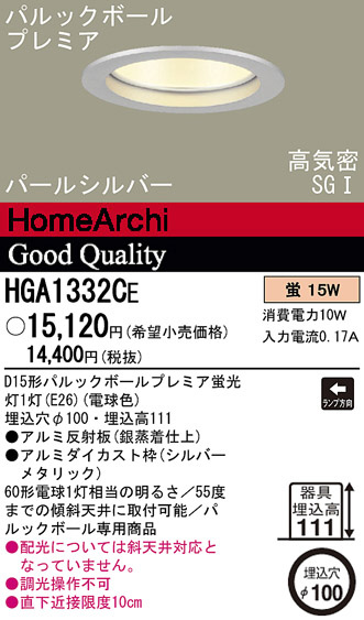 Panasonic ¥À¥¦¥ó¥é¥¤¥È HGA1332CE