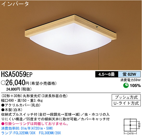 ¡ü°ú³Ý¥·¡¼¥ê¥ó¥°¤ÏƱº¤·¤Æ¤ª¤ê¤Þ¤»¤ó¡£ ¾ÃÈñ¸úΨ80.0lm/W(4720lm¡¦59W) ¥é¥ó¥×:FCL32ENW¡¿30X¡¡FCL30ENW¡¿28X ¥¤¥ó¥Ð¡¼¥¿