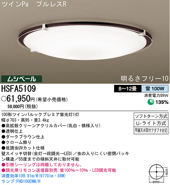 ¡üÄ´¸÷ÍÑ¥ê¥â¥³¥óÁ÷¿®´ïÊÌÇä¡§·Ö100¡ó¡Á10¡ó¡¦LEDÄ´¸÷²Äǽ ¾ÃÈñ¸úΨ109.8lm/W(9770lm¡¦89W) ¥é¥ó¥×:FHD100ENW¡¿H ¥Ä¥¤¥óPa¡¡¥×¥ë¥ì¥¹R ÌÀ¤ë¤µ¥Õ¥ê¡¼10