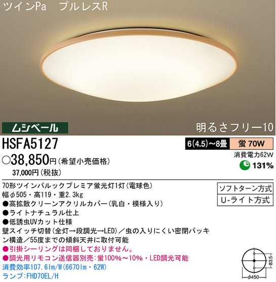 ¡üÄ´¸÷ÍÑ¥ê¥â¥³¥óÁ÷¿®´ïÊÌÇä¡§·Ö100¡ó¡Á10¡ó¡¦LEDÄ´¸÷²Äǽ ¾ÃÈñ¸úΨ107.6lm/W(6670lm¡¦62W) ¥é¥ó¥×:FHD70EL¡¿H ¥Ä¥¤¥óPa¡¡¥×¥ë¥ì¥¹R ÌÀ¤ë¤µ¥Õ¥ê¡¼10