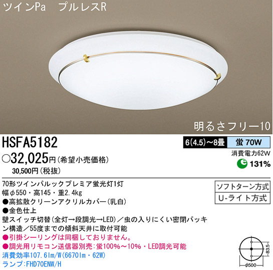 ¡üÄ´¸÷ÍÑ¥ê¥â¥³¥óÁ÷¿®´ïÊÌÇä¡§·Ö100¡ó¡Á10¡ó¡¦LEDÄ´¸÷²Äǽ ¾ÃÈñ¸úΨ107.6lm/W(6670lm¡¦62W) ¥é¥ó¥×:FHD70ENW¡¿H ¥Ä¥¤¥óPa¡¡¥×¥ë¥ì¥¹R ÌÀ¤ë¤µ¥Õ¥ê¡¼10
